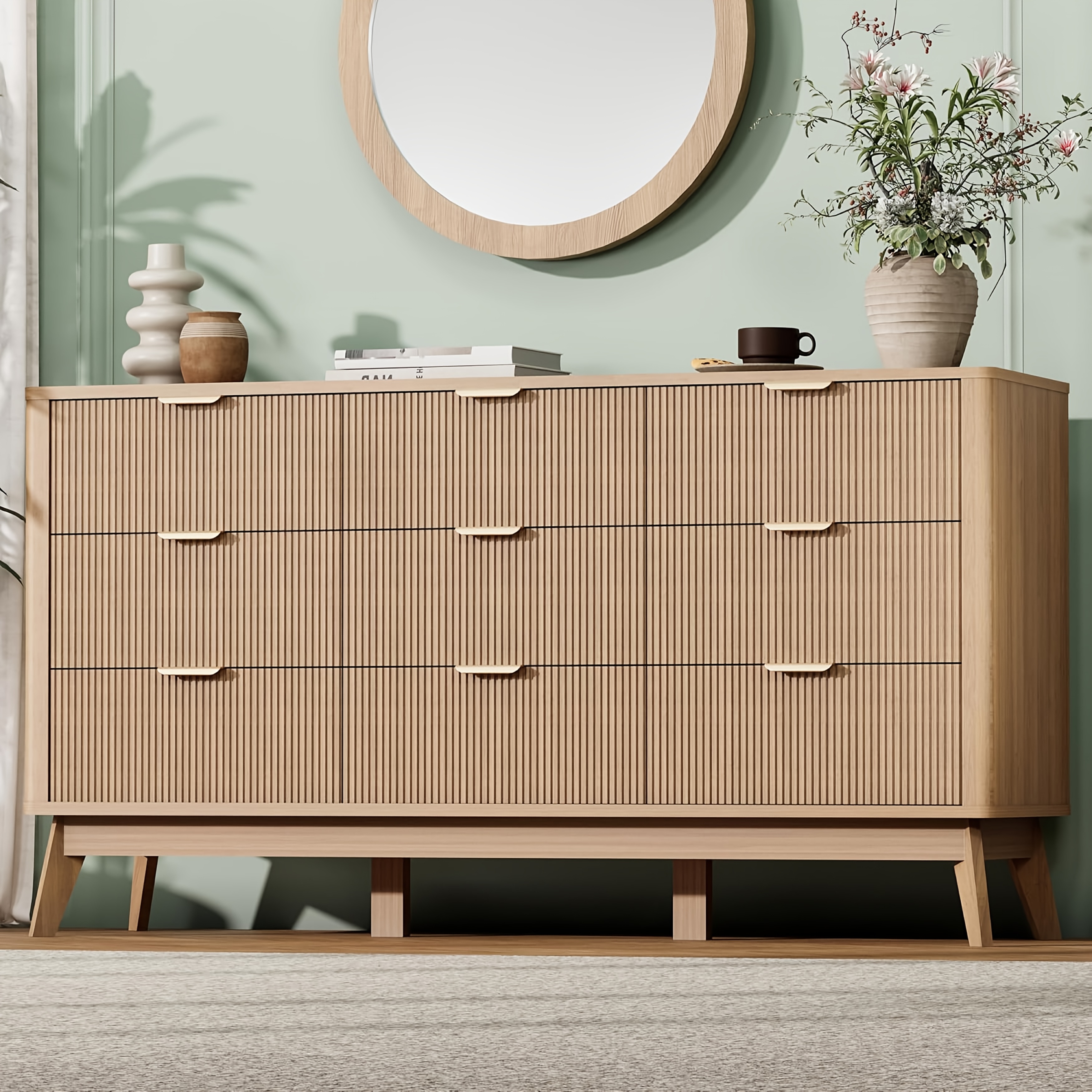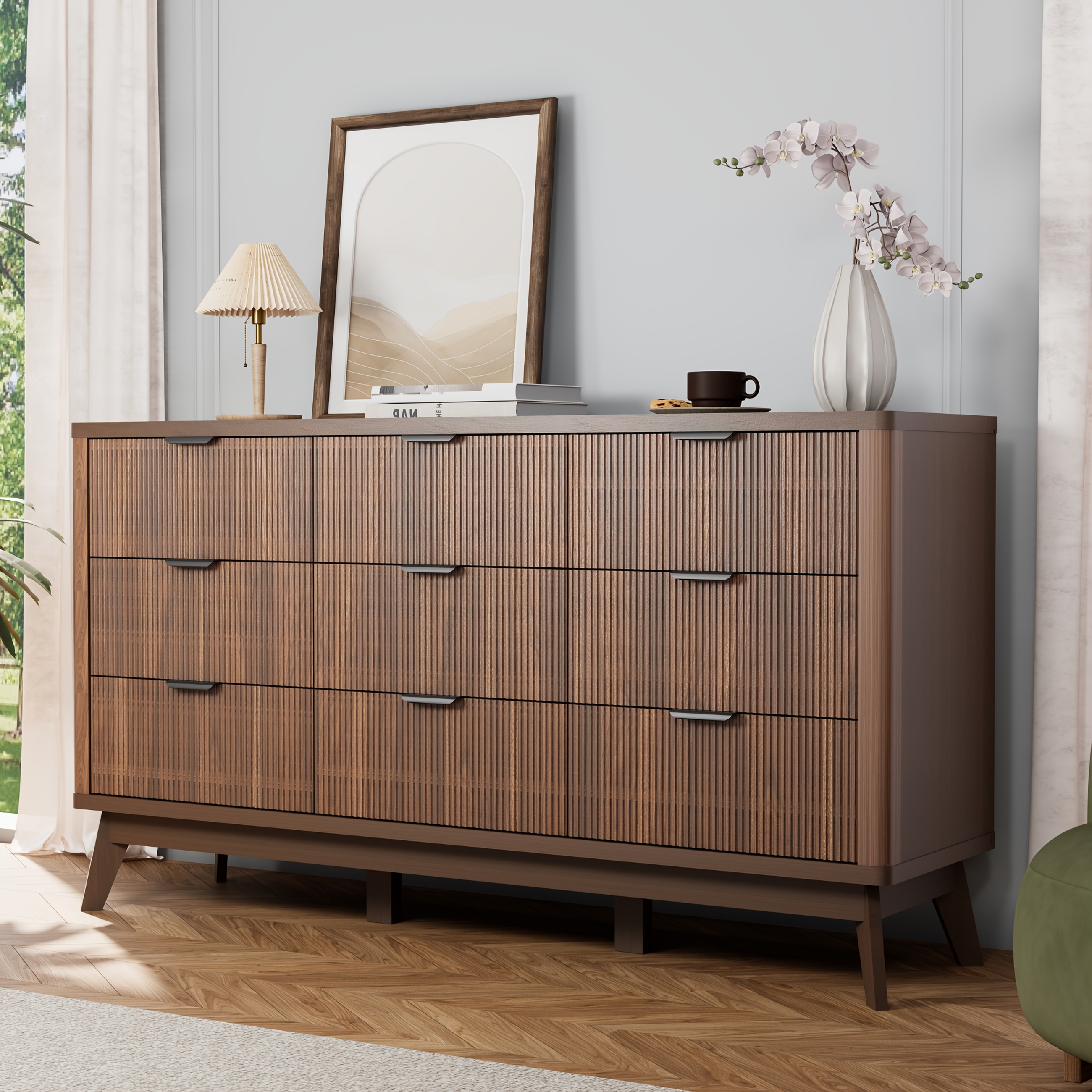 Crafted with solid wood and finished to highlight natural warmth, the Willow Bend Nine-Drawer Wood Dresser features smooth-glide drawers that keep belongings neatly tucked away. With its mid-century inspired lines and thoughtful proportions, it transitions seamlessly between bedroom, living room, entryway, or office settings.