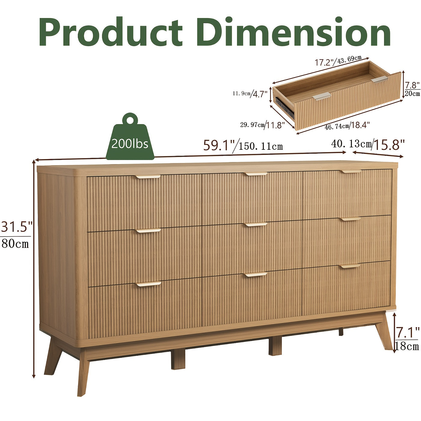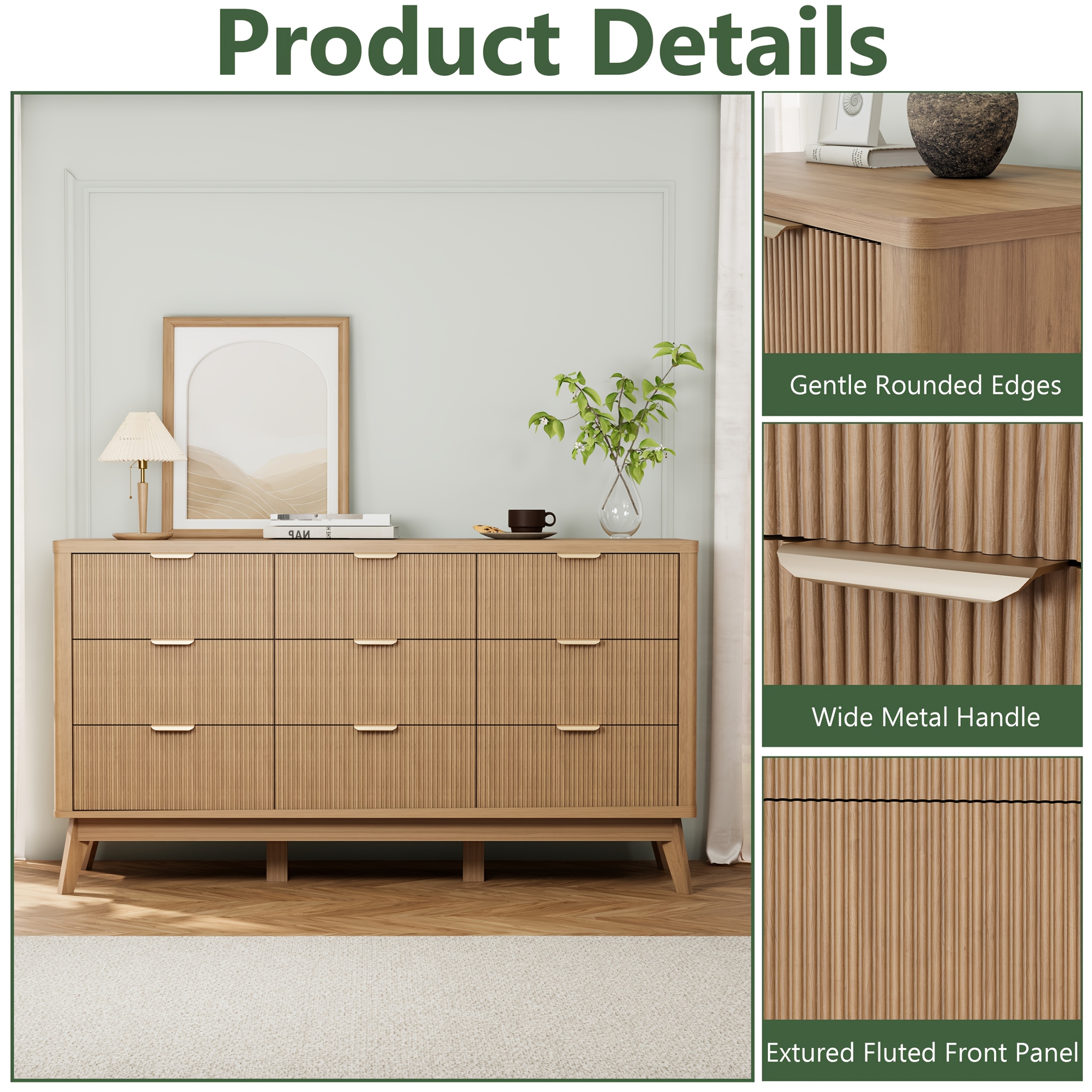 Willow Bend Nine-Drawer Wood Dresser 59″ Mid-Century Inspired Solid Wood Storage Chest