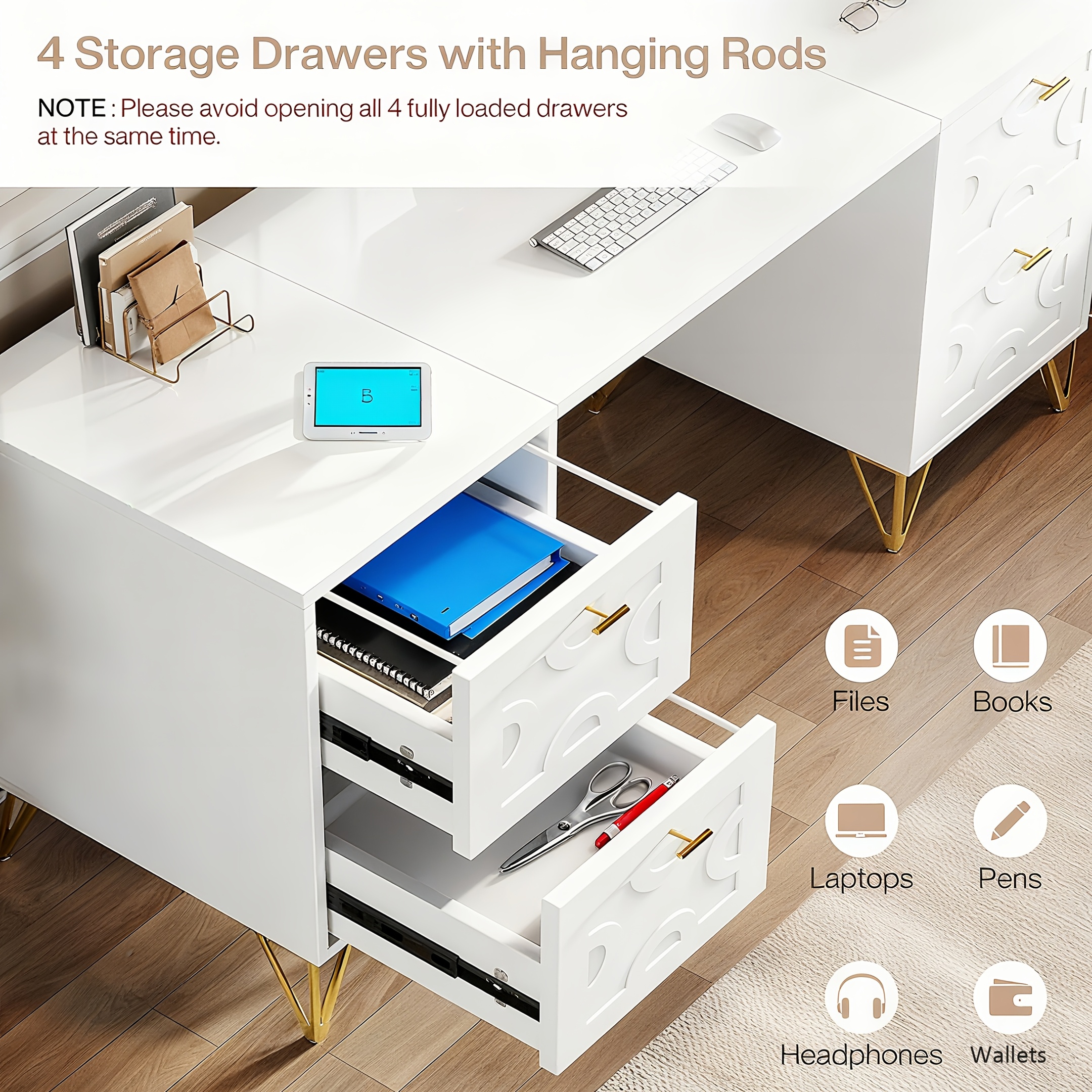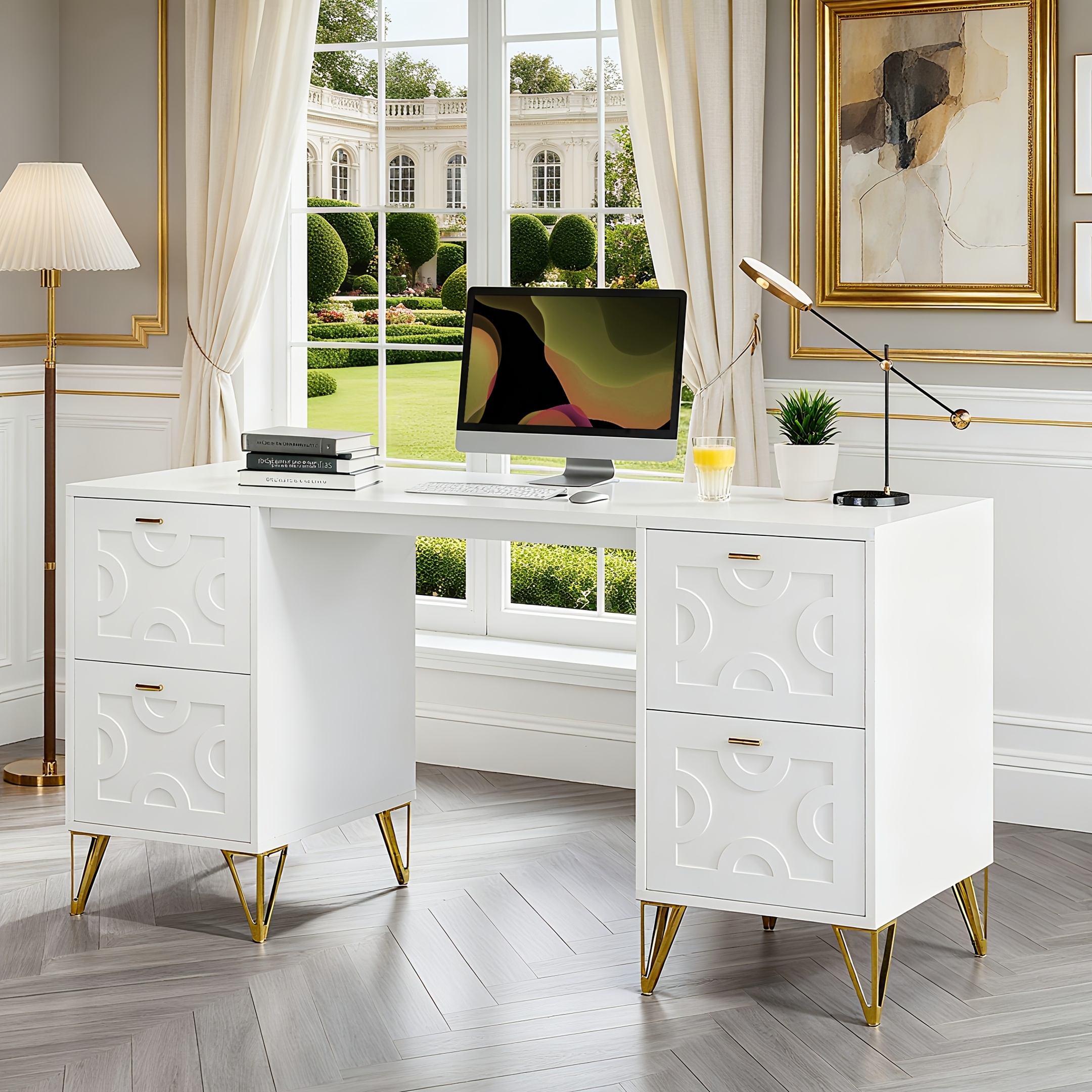 The Camden brings strength, structure, and modern simplicity to your home office. With a spacious 59-inch surface, heavy-duty metal frame, and integrated 4-drawer file cabinet, this contemporary desk is designed for those who need room to spread out — without sacrificing style or storage.