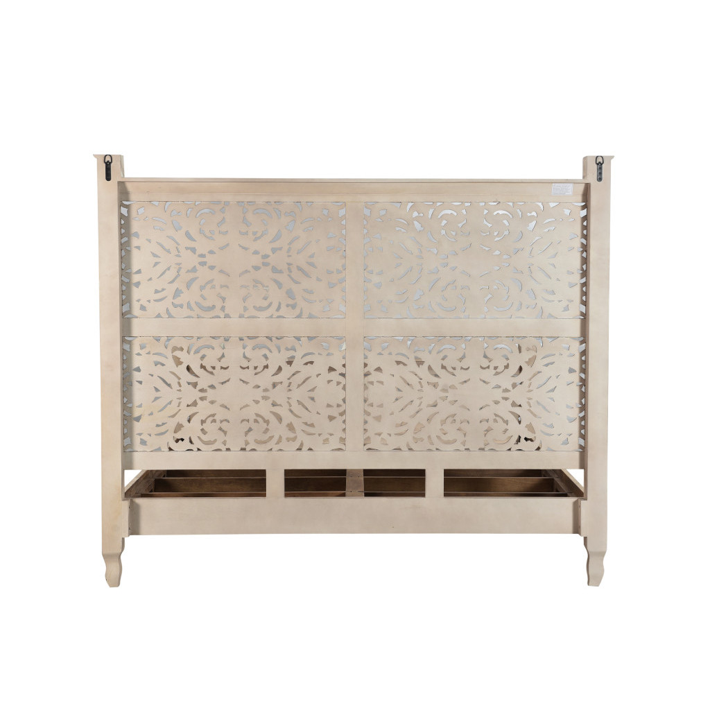 The Florence Floral Hand-Carved Solid Wood King Bed is a true heirloom piece, featuring intricate floral carvings carefully hand-crafted by skilled artisans. Made from solid wood and finished in a soft, weathered gray, this bed blends old-world artistry with a refined, collected look that feels both elevated and inviting.