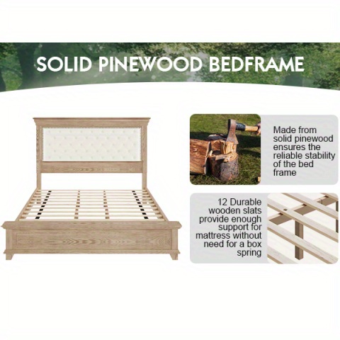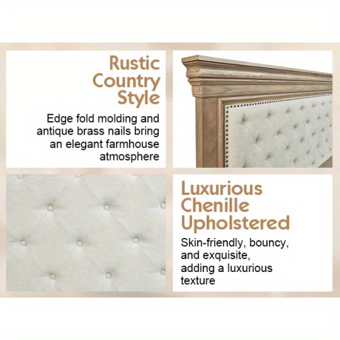 - Upholstered headboard adds comfort for nighttime reading and relaxed mornings
