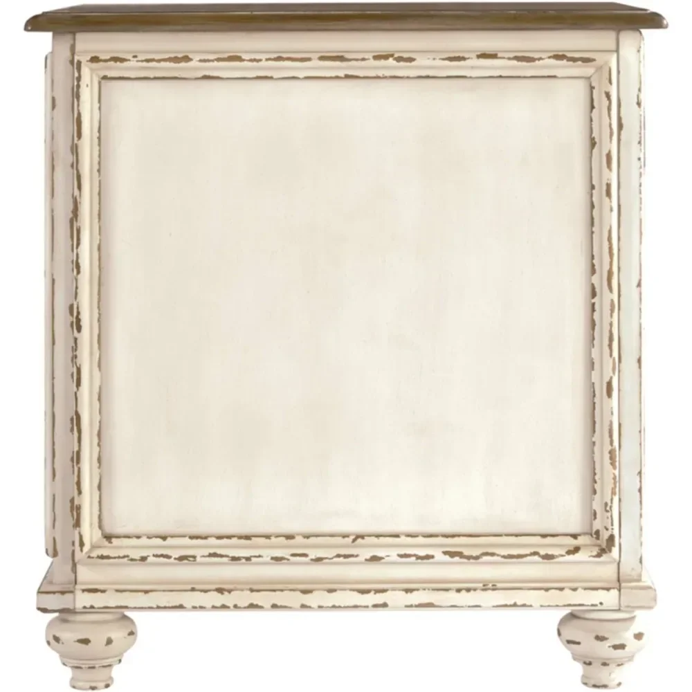 The Realyn French Country Chairside End Table is a beautifully versatile piece designed to add both character and function to your space. Finished in a softly distressed chipped white with a warm wood top, it brings the same timeless charm found throughout the Realyn collection.
