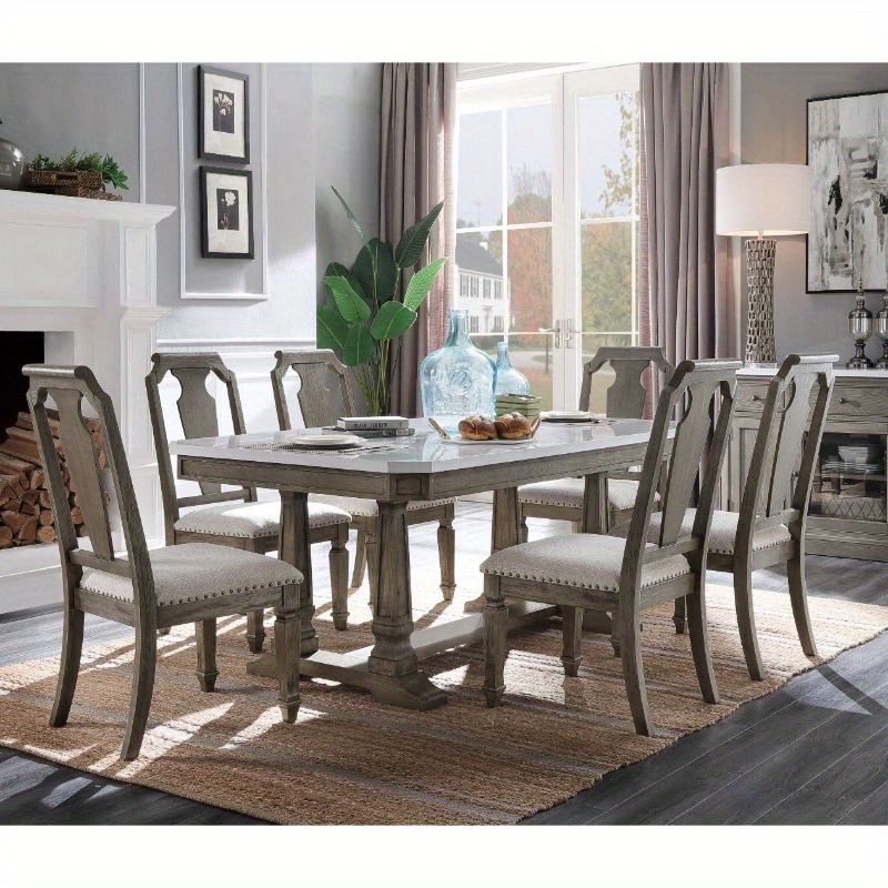 • “Weathered Oak Open-Back Side Chairs – Set of 2 (Beige Upholstery)”