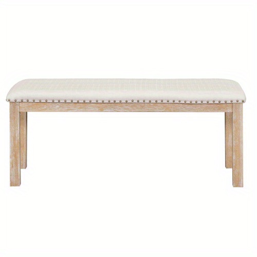 - Durable Materials: Tabletop crafted from acacia veneer and MDF; chairs and bench made with rubberwood, foam, and linen fabric.