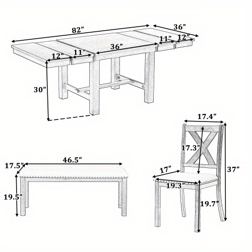 - Expandable Table: Two 11" removable leaves extend the table from 60" to 82", adapting to your space and guest count.